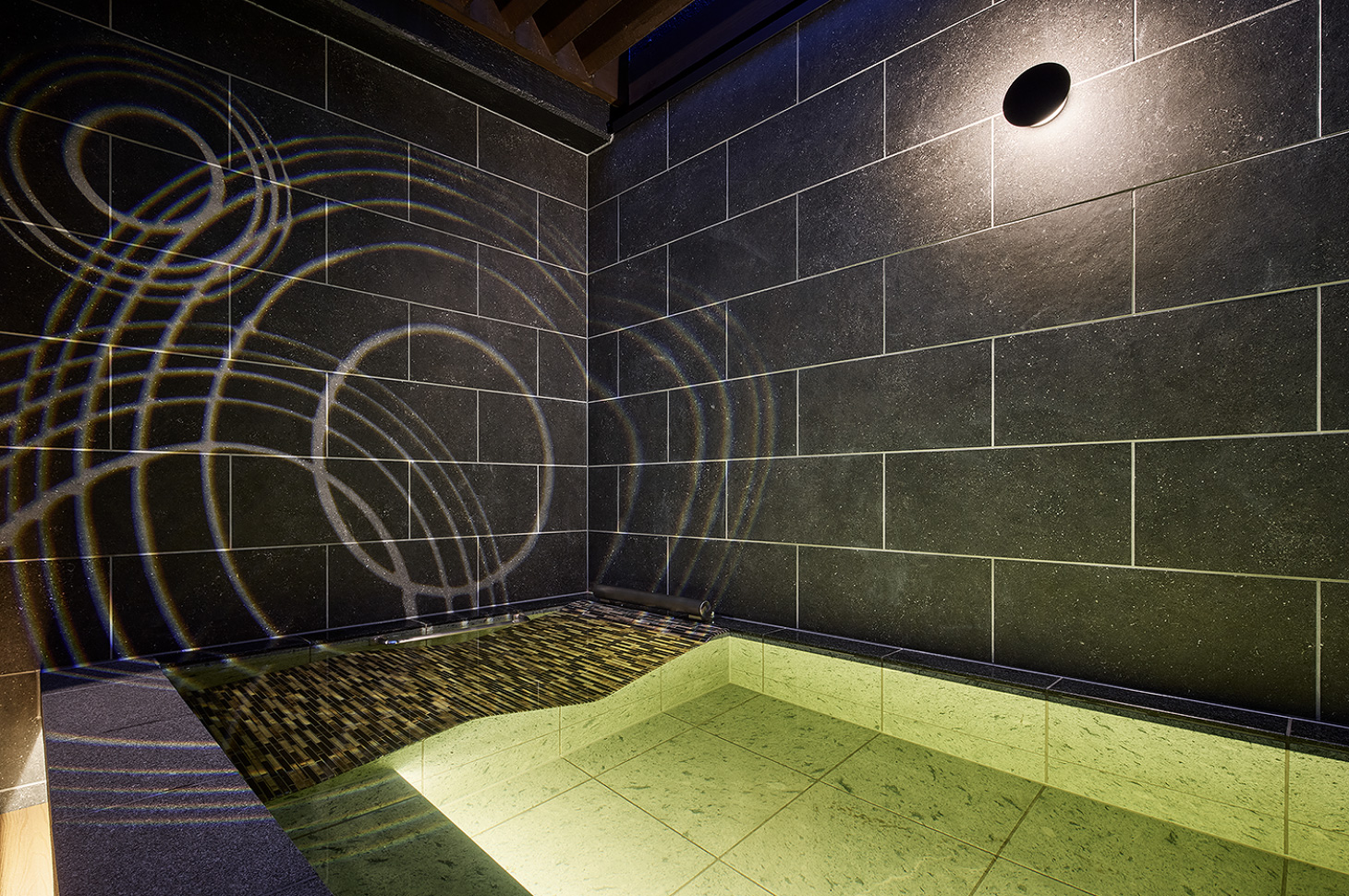 波紋が浮かび上がるライティングや、室内とリンクした円形モチーフをデザインに取り入れた一体感のあるデザインにより癒しの空間をご提供します。