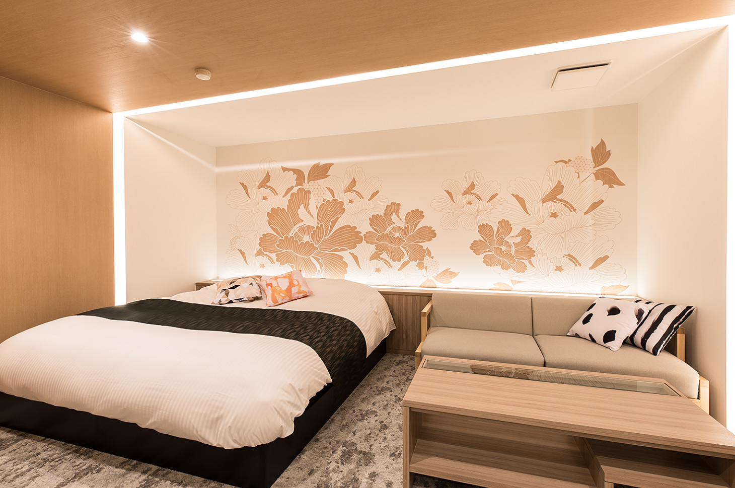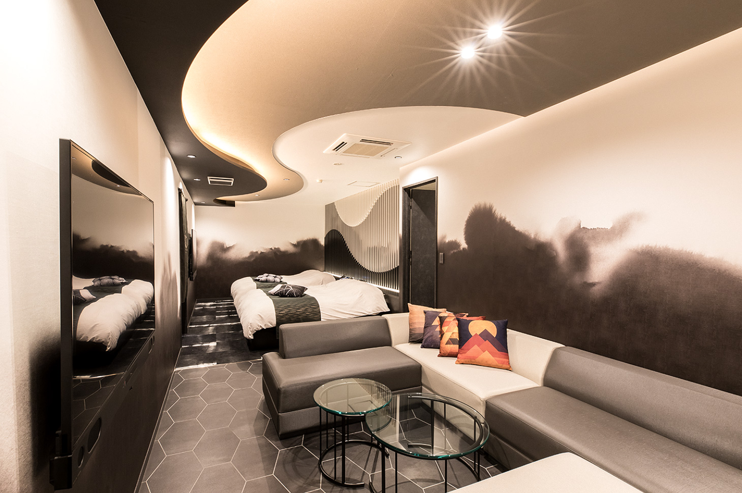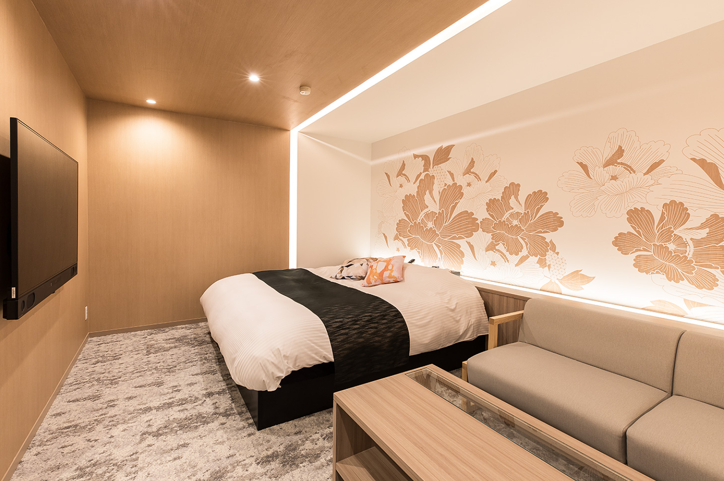 和モダンテイストをベースとした多彩なデザインのお部屋をご用意。壁面・天井・照明・カーテン・装飾など、細部に至るまでこだわった内装が、非日常空間を演出します。