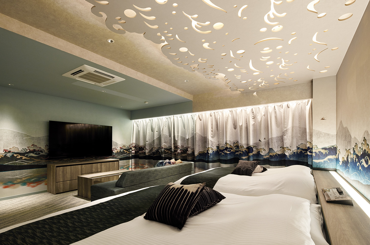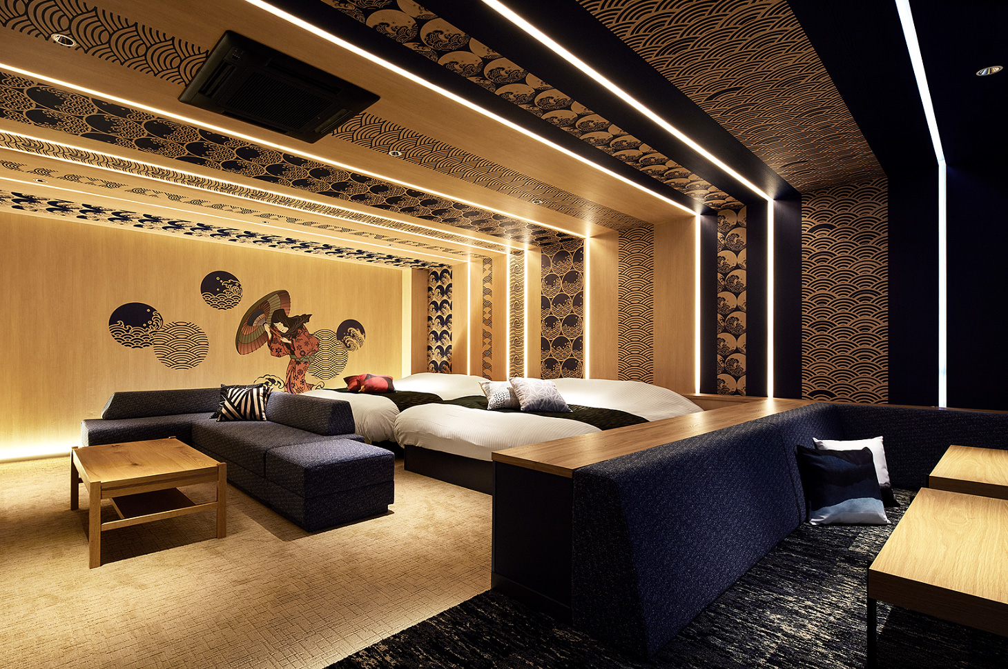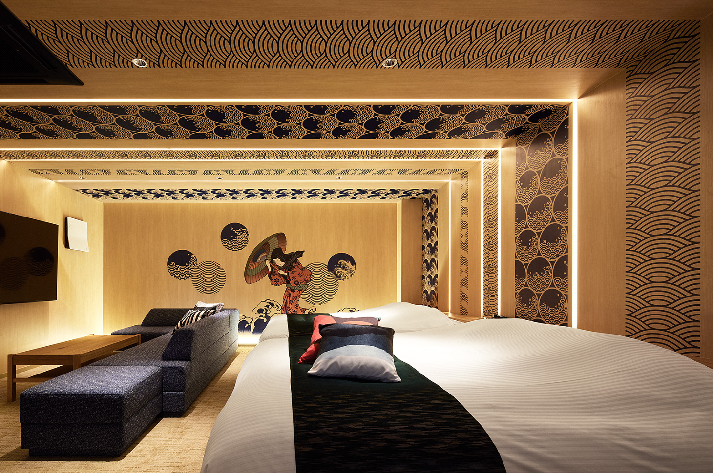 和モダンテイストをベースとした多彩なデザインのお部屋をご用意。壁面・天井・照明・カーテン・装飾など、細部に至るまでこだわった内装が、非日常空間を演出します。