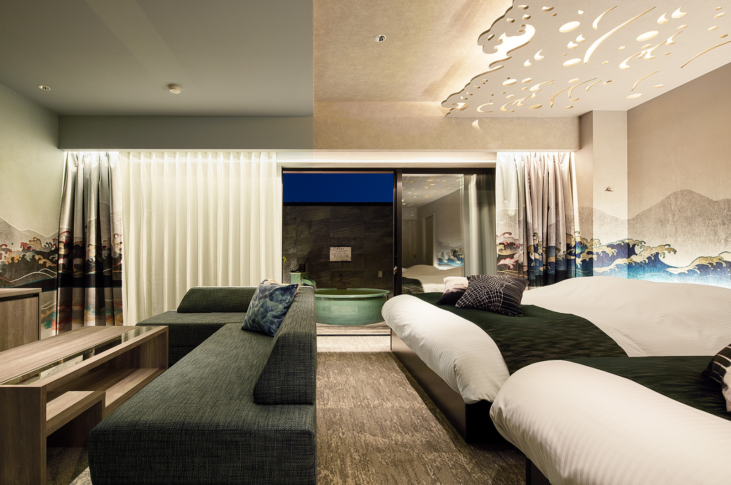 都会の喧騒から離れたHOTEL NUQUの個室露天風呂付きのスイートルームで、特別な人と特別な時間をお過ごしください。